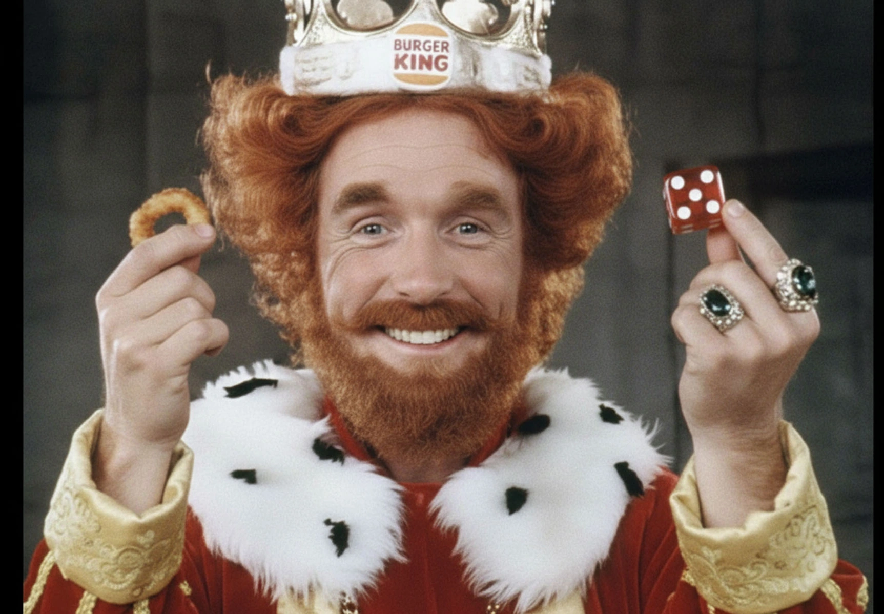 Within the “Burger King Kingdom” context, the Burger King is portrayed as a “magical,” theatrical sovereign, the protagonist of children’s advertising that began in the second half of the 1970s. This version is often remembered as the “Marvelous Magical Burger King”: a fairy-tale-style king who performs tricks and magic, including through a “magic” ring, and is accompanied by recurring characters such as Sir Shake-a-Lot, the Wizard of Fries, and the Duke of Doubt.